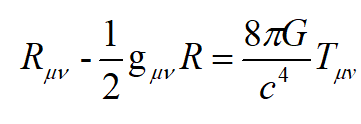 我们来看下场方程,里奇曲率张量减去二分之一的度量张量与里奇标量的乘积,与能量-动量-应力张量成正比。