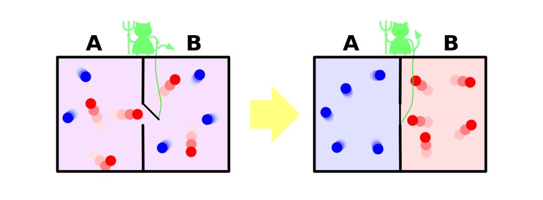 麦克斯韦妖思想实验的示意图(图片来源:维基百科)