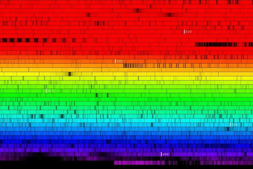 为了确定太阳或者其他任何一颗恒星的化学成分,天文学家通常会求助于光谱,光谱会将光分解成不同的波长,就像彩虹一样。