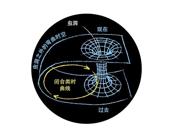 物理学家们已经提出了一些非常奇怪的机制,试图创造这样的路径。在1991年的一篇文章中,戈特证明如何在两根宇宙弦(cosmic string:一种无限长,比原子尺度还要薄的结构,或许形成于宇宙早期)交汇的地方产生闭合类时曲线。1983年,加州理工学院的物理学家基普·索恩 (Kip Thorne)开始探讨一种叫做虫洞的闭合类时曲线的可能性(虫洞是一种连接不同时空地点的通道),这种虫洞或许允许回到过去。“在广义相对论中,如果你连接了两个不同的空间区域,那么你也连接了不同的时间区域”,肖恩·M·卡罗尔(Sean M.Carroll)说,他是索恩在加州理工学院的同事。