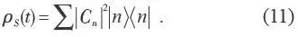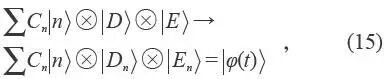 在量子退相干理论中, 处在初态|φS> =ΣCn |n> 的系统与处在初态|E> 上的环境发生非破坏(不交换能量)的相互作用,使得t 时刻总的状态变为