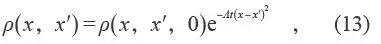 其中ρd(x) =Σ|Cn|2 |φn(x)|2代表强度相加项, 而Σn≠mCm*CnFmn(t)φm*(x)φn(x) 代表相干条纹,当Fmn(t) = 0 相干条纹消逝。