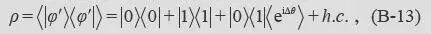 φu(x) = <x|0> ∝ eikx (φd(x) = <x|1> ∝ eik(x + Δ) ), 其中Δ = ld - lu是“光程差”。于是, |φ> ∝ |0> + |1> 给出约化密度矩阵: