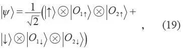 从这个意义上讲,这样的宏观环境与系统耦合,虽然可以不转换能量,但可以记录信息,使得系统“进化”(演化)到一个经典的状态——用非对角项消逝的退相干密度矩阵表示,使之对角化的基矢就是所谓的偏好基矢。如果把环境分成几个子系统,当作不同的观察者,则不同观察者得到了相同的观察结果。我们以两个观察者测量自旋为例,说明量子达尔文的观念。包含一个系统和两个观察者(O1和O2)的世界波函数可以写为