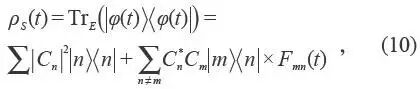 综上所述,环境的存在就像一个观察者在不断地监视着系统的运动,它通过与系统纠缠引入了等效的随机相位Δθ , 状态|φ(0)> = |0> + |1> , 被测后变为|φ′> = |0> + eiΔθ |1> ,平均结果给出: