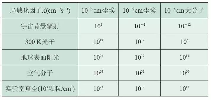 决定于环境粒子在宏观物体上的有效散射界面σeff 。表1给出了各种物体局域化因子的列表。