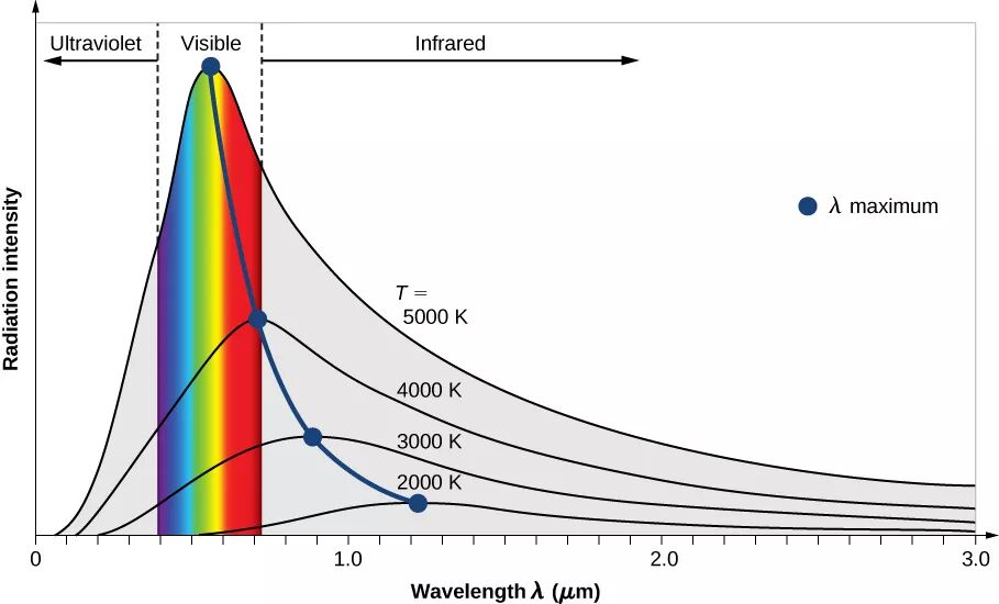 ▲ 通过实验得到的黑体辐射规律如上图。