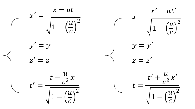 ▲ 洛伦兹变换。左侧为正变换,右侧为逆变换。