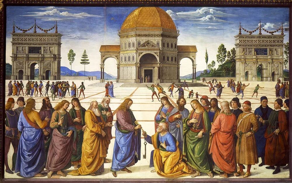 ○ 图2:透视的趣味:佩鲁吉诺的《基督将钥匙交给彼得》(1481-82)