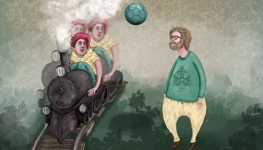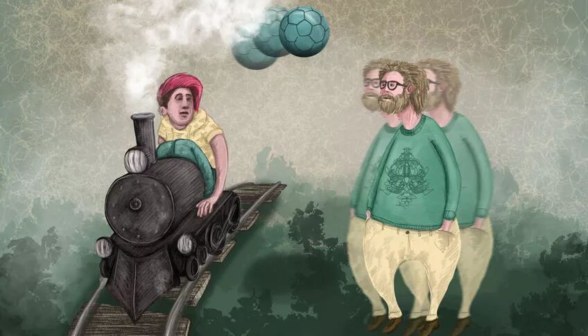 ○ 然而,坐在火车上的观察者则看到,站台上的观察者和球处于量子叠加状态。| 图片来源:Christian Murzek/IQOQI-Vienna