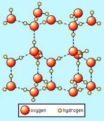 而这种结构的堆积方式比混乱的水分子之间随意的堆积反而占据更多的空间(对于很多各向同性的金属原子则相反)。想象一个不规则的带有磁极的积木,就不难想象它的整齐排列的结构会比随意堆积占的空间要大一些。