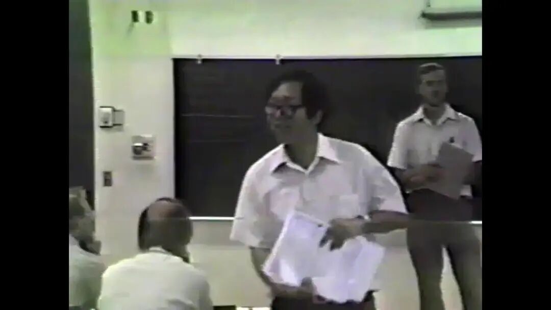 加州时间 8 点整,我准备好了两场演讲的材料。第一天顺利度过:第一场报告,午餐,去沙滩,游泳,第二场报告,晚餐,告别同事,回住处睡觉。重新看报告的录像时我才发现,听众的阵容强大得可怕:Ahlfors,Bott,陈省身,Kirby,Siebenmann,Edwards,Rosenberg,Freedman,丘成桐,Maskit,Kra,Keen,Dodziuk……