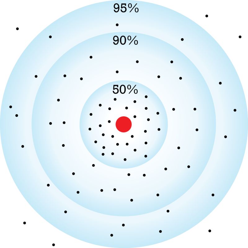 也就是说,人们使用概率解释,似乎仍然可以将电子想象成一个类似的经典小球(这使我们得到一点安慰),只不过我们不能确定这个小球在空间的位置,只能确定它在某点出现的概率!