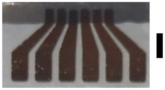 图 | 实验中使用的电极,深灰色区域附有金银混合物薄片,薄片有 100nm 厚,黑色的长条长度为 3mm(来源:此次论文)