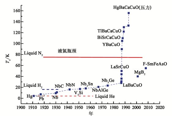 1980 年代之前,超导的研究还集中在单元素金属和多元合金中。通常称这些金属或金属合金的超导体为常规超导体, 这些材料包括水银,铝,铅和其它金属合金如铌锡,铌钛和铌锗合金。它们的临界温度 Tc(即从导体转变为超导体的温度)在 20K 以下,这个温度和液态氢的沸点差不多。