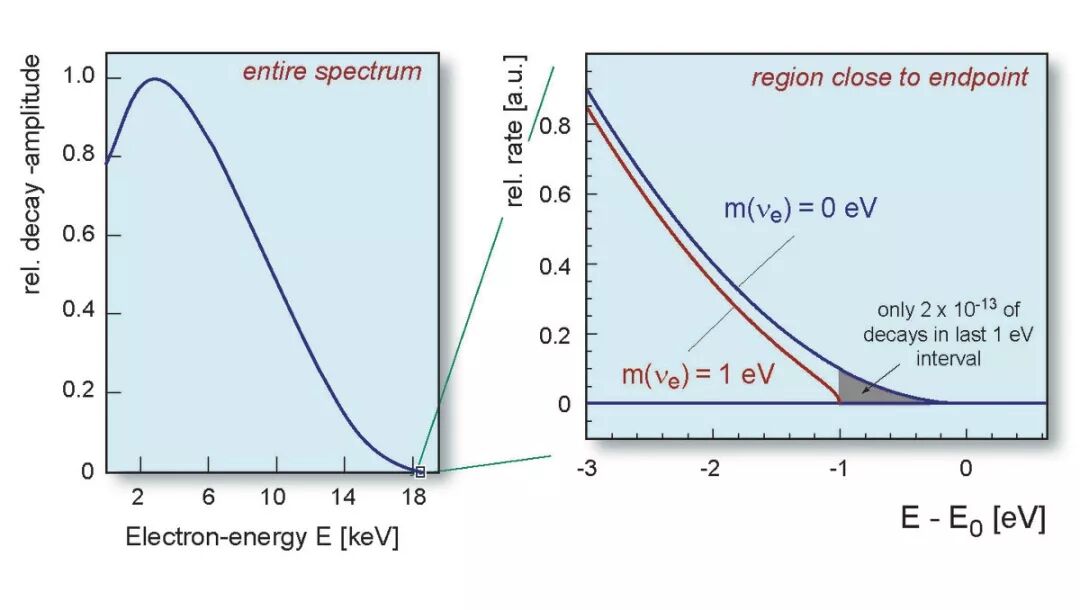 也就是说,如果我们可以精确测量到电子能谱高能的“终点”,就可以推算出中微子的质量。