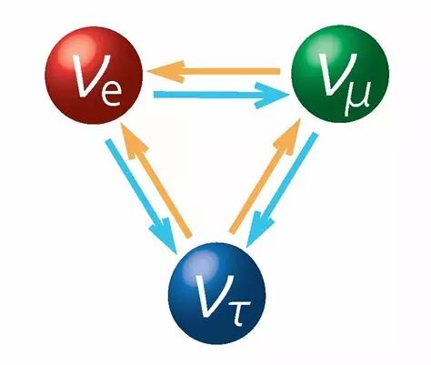 ○ 已知的中微子有三种:电子(e)中微子、μ子中微子和τ子中微子。中微子在传播的途中会互相转变类型,这种转变过程叫做“中微子振荡”。