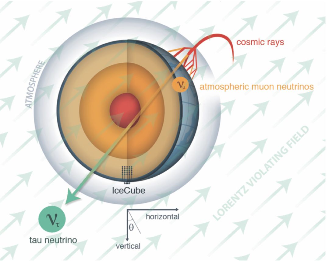 在一个洛伦兹对称可以被打破的宇宙中,比如在一个引力可以被量子理论解释的宇宙中,中微子从一种类型(或者说“味”)转变成另一种类型时,跟标准中微子振荡会有所偏离。通常,中微子振荡的方式取决于中微子的质量或者它传播的距离,但当中微子与洛伦兹破缺场(这是一种弥漫在空间中的假想的场)相互作用时,会导致中微子振荡模式的显著变化。