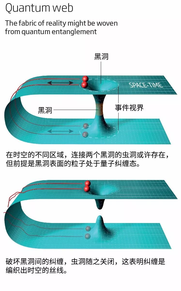 范拉姆斯多克的研究成果使马尔达西纳和他的同事——斯坦福大学的伦纳德·萨斯坎德(Leonard Susskind)提出了一个大胆的假说:时空总体上是由纠缠现象产生的。这个假说窥探到了更深层的现实本质。