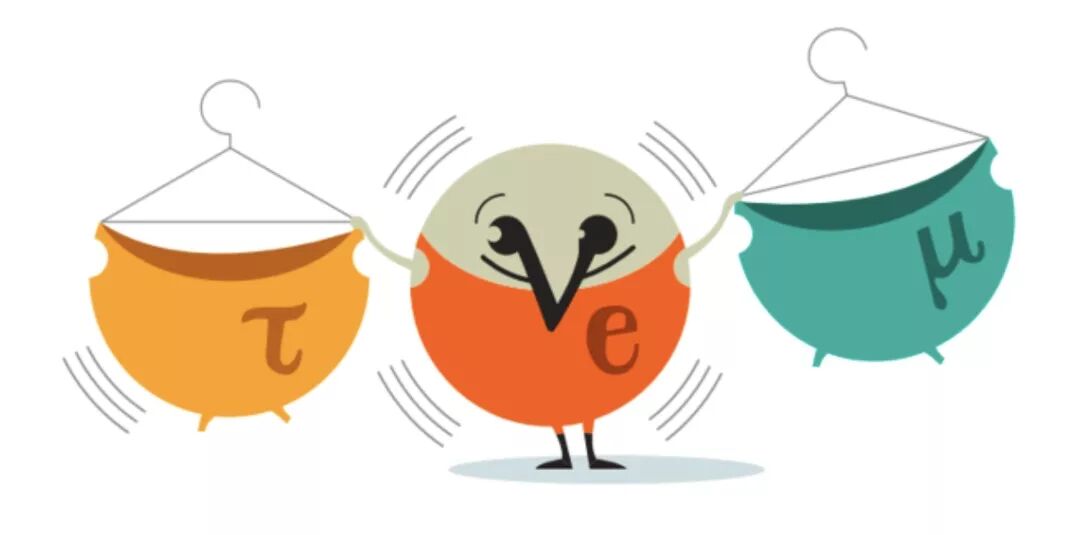 中微子有三种“风味”:电中微子(νe)、μ中微子(νμ)以及τ中微子(ντ),在其传播过程中,可能会发生味间的振荡,即在某个地方产生的电中微子在另一个地方被探测到时就可能会变为μ中微子或τ中微子,这种现象被称为“中微子振荡”。梶田隆章团队的实验和阿瑟·麦克唐纳所带领的研究小组的实验一同发现了“中微子振荡”的新现象,证明长期被认为没有质量的中微子,其实必须是有质量的。图片来源:Nobelprize.org