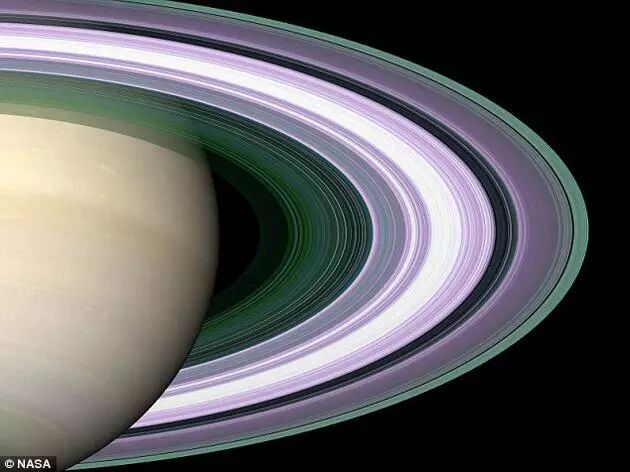构成土星环的颗粒形状不同、大小各异。图中不同颜色的颗粒大小也不同,绿色最小。科学家发现,土星环中冰粒和碎砾的分布是其不断相撞、碎裂的产物。