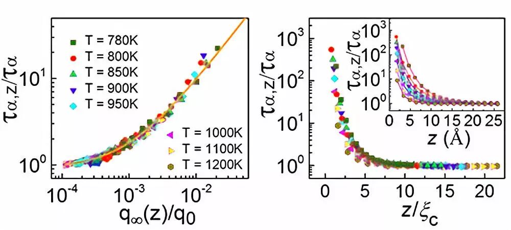 图 2 受限状态下金属玻璃过冷液体的慢动力学由构型关联得到的静态关联长度控制。