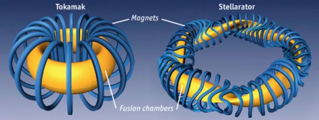 与此同时,苏联的科学家正在研发一种不同的装置,名为“托卡马克”。这台由物理学家 Andrei Sakharov 和 Igor Tamm 设计的机器利用强大的磁场,将热等离子体变成甜甜圈的形状。托卡马克能够更好地维持等离子体的高温和稳定,直到今天,大多数聚变研究项目都是依赖于托卡马克的设计。为了实现这一目标,中国、欧盟、印度、日本、韩国、俄罗斯和美国已经联合起来,要共同建立一个世界上最大的托卡马克反应堆,这一计划预计能在 2025 年建成。不过近年来,科学家对仿星器的热情也再次被点燃,最大规模的一次始于 2015 年的德国。从两条不同的路径进行探索,或许是实现聚变的最优策略。