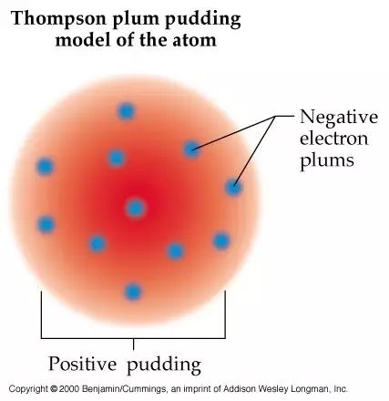 △ 图1:汤姆逊原子模型:呈圆球状的原子,充斥着正电荷,而带负电荷的电子则像一粒粒葡萄干镶嵌其中。(图片来源:Benjamin)