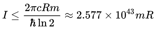 公式中 c 是光速,h 是普朗克常数, 结论就是 1.36 × 1050 比特每千克每秒。
