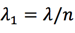 当光从一种材料入射到另一种材料(后称“介质”)时,像透明的玻璃,波长、光速就会发生变化。如果这种介质相对于空气的折射率为n,光速就会变成: