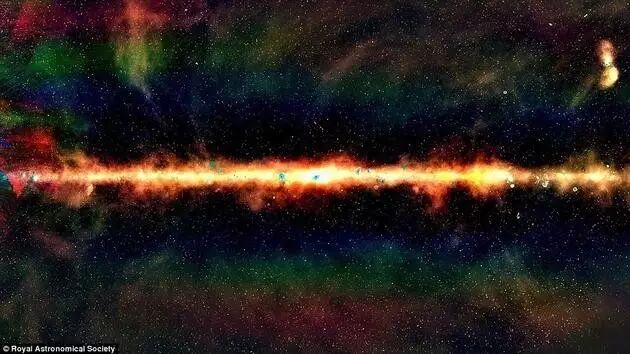 ▲在30多万个星系中,银河系显得极为炫目。图中红色部分为低频率,绿色为中等频率,蓝色代表高频率。每一个光点都是一个星系。