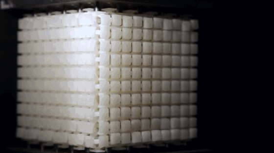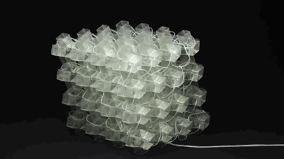 超材料是一类人造材料的统称,它的结构类似于由晶胞构成的晶体,不过超材料中的“晶胞”是比原子或分子更大的基本单元,整体结构更是完全人造的。因此它的性质并不简单地取决于其化学成分,构成它的基本单元以及排列结构都至关重要。图中展示的便是3D打印制作的可编程超材料的概念模型。
