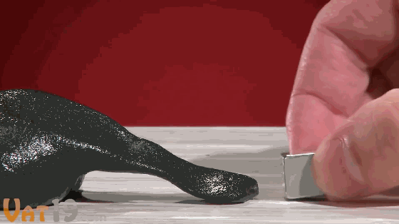 没什么特别的,这只是掺入了磁性颗粒的橡皮泥,然而却像有了生命一般充满了灵性,和磁铁之间的相互作用非常的有趣。>>相关阅读<<