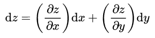 05全微分有了偏导数的概念,我们就有办法写出dz和dx、dy之间的关系了。在一元函数里,导数是dy、dt,我们自然就可以写出dy和dt之间的关系:那么,到了二元函数z=f(x,y)的时候呢?我们想象有个人在山的一点要往另一点爬,我们让他先沿着x轴的方向爬(也就是固定住y的值),假设他沿x轴移动了dx。根据上面偏导数的定义,如果我们把y 的值固定了,那么他在x轴方向上的导数是可以用偏导数∂z/∂x来表示,那么在他沿着x轴移动的时候,他上升的高度就可以写成(∂z/∂x)·dx。同样,接下来他沿着y轴方向走的时候,他上升的高度就可以写成(∂z/∂y)·dy。我们把这两个部分上升的高度加起来,不就得到了最终爬山的高度变化dz的了么?也就是说:这个公式我们可以把它做作全微分定理,它其实是对上面一元函数导数关系的一个自然推广。它告诉我们,虽然在曲面的一个点上有无数个方向,但是只要我们掌握了其中x和y两个方向上的偏导数,我们就能把握它的函数变化dz。还原到爬山的这个例子上来,这个公式是在告诉我们:如果我知道你沿着x轴和y轴分别走了多少,然后我知道你这座山在x轴和y轴方向的倾斜度(即偏导数)是多少,那我就知道你爬山的纯高度变化有多少(又是几近大废话~)。 我们费了这么多劲就为了推出这个公式,那么这个公式里肯定隐藏了什么重要的东西。不过,现在这种形式还不容易看清楚,我们还得稍微了解一点矢量分析的内容,把公式拆成矢量点乘的形式,那就明显了。