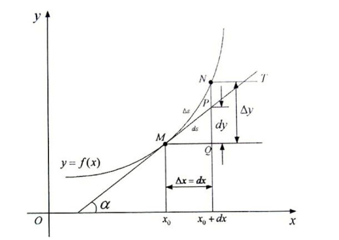 在微积分刚创立的时候,莱布尼茨把dx看作一个接近0但又不等于0的无穷小量,这种“朴素”的思维很符合直觉,而且用这种思想来计算也没什么错,但是它的基础是非常不牢固的。正是这种幽灵般的无穷小量dx(时而可以看作是0,时而可以当除数约分)导致了第二次数学危机,数学家们经过一个多世纪的抢救才给微积分找到了一个坚实的地基:极限理论。这段内容不是太理解没关系,只要知道我们可以用dy/dx表示函数在M点的导数(在这里就是切线的斜率),可以用它来表示图像在这里变化的快慢就行了。