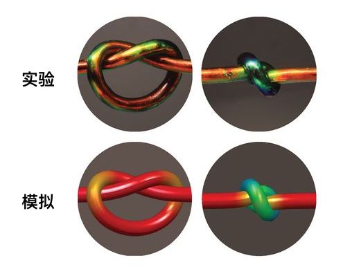 他们发现,这些细微的参数差别在很大程度上决定了绳结是否牢固。在模型和实验中,他们利用变色纤维的不同部位在受到不同应力和压力时所呈现出的颜色差异,来研究两个几乎相同的绳结究竟哪个更牢固。过去我们只能凭经验来判断怎样的绳结最牢,而新的模型终于可以给出背后的理论原因。