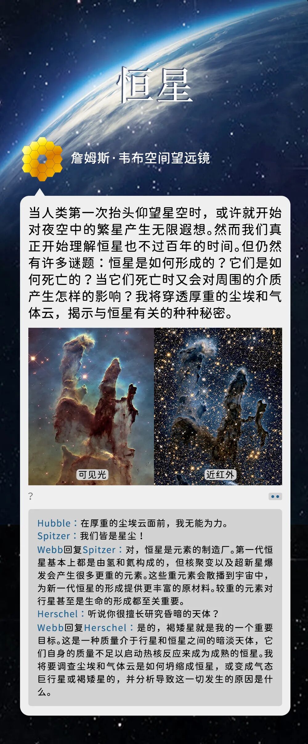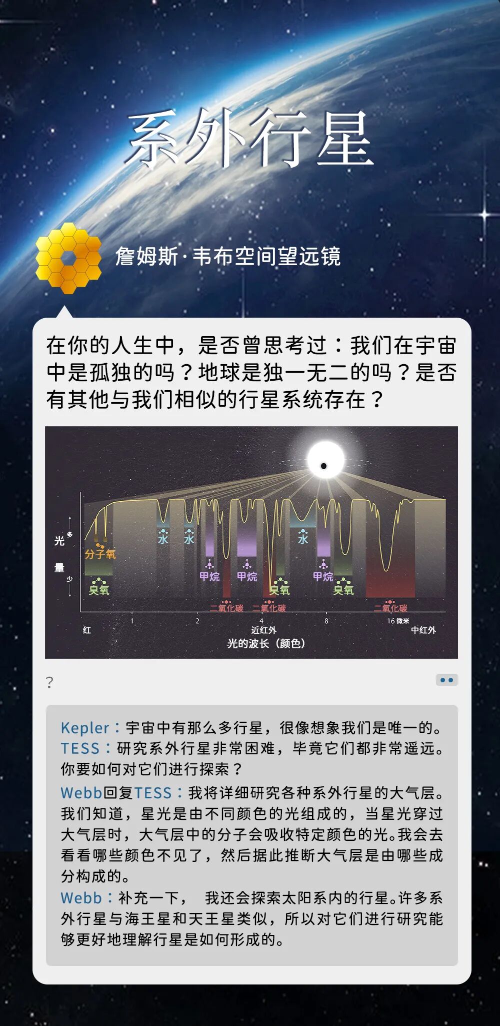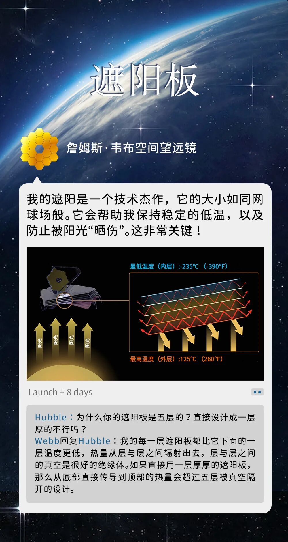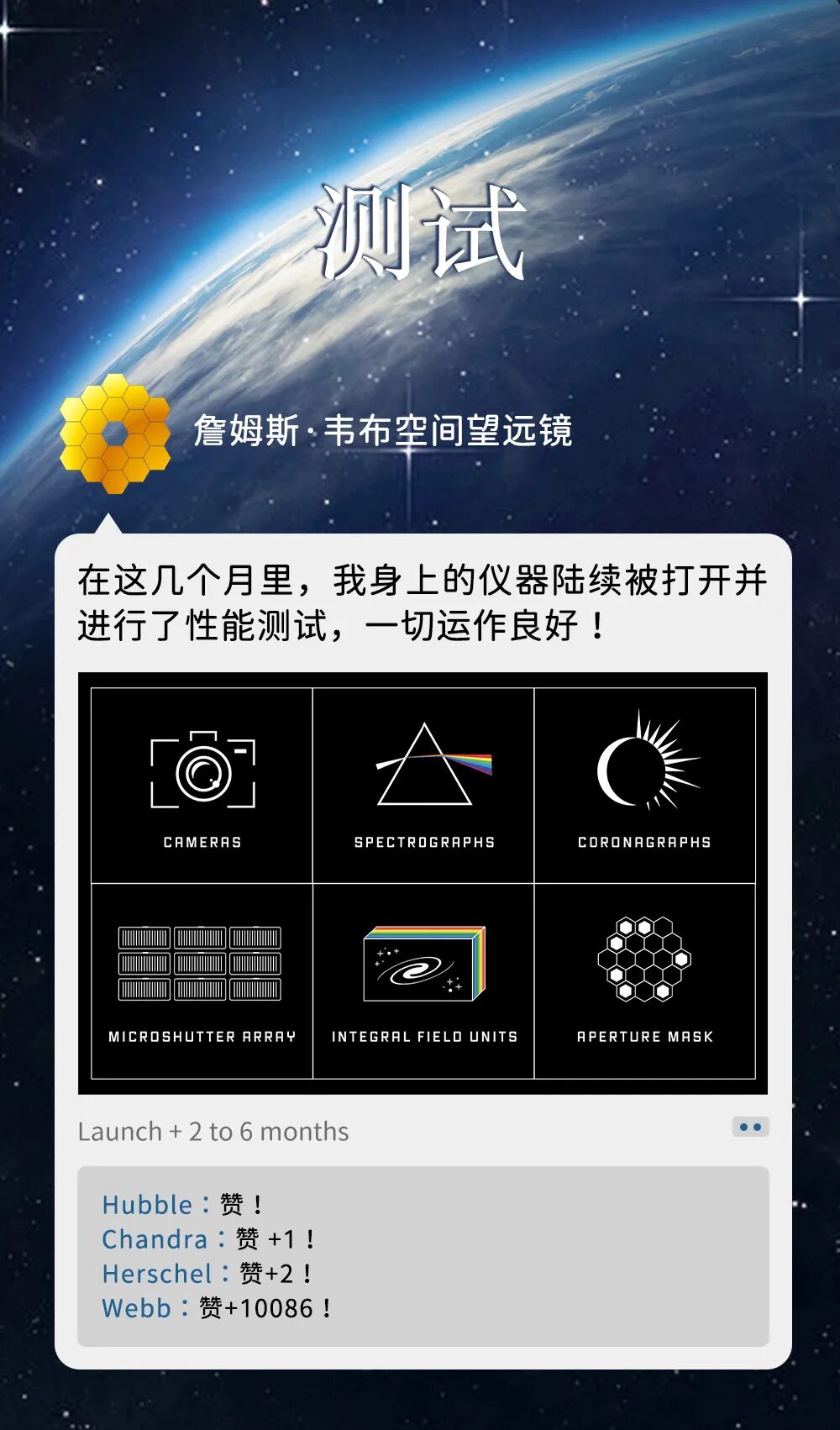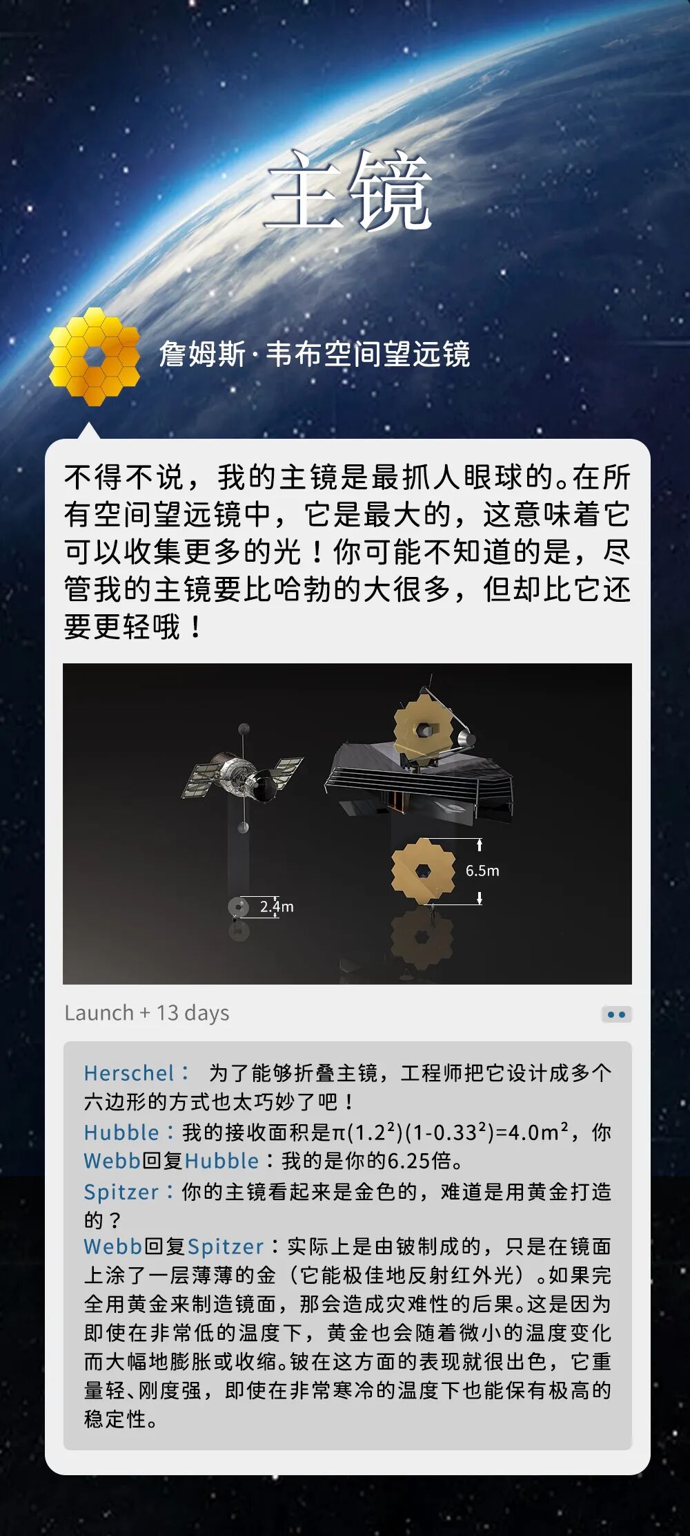 https://jwst.nasa.govhttps://webbtelescope.org#图片来源:封面图:ESA/ATG medialab首图:ESA哈勃眼中的宇宙:https://www.esa.int/ESA_Multimedia/Images/2020/04/Thirty_years_of_Hubble_Space_Telescope科学目标:第一批恒星(N. R. Fuller/National Science Foundation)、黑洞(ESO/M.Kornmesser)、恒星演化(NASA)、系外行星(NASA & JPL/Caltech)、太阳系(Wikimedia Commons)启程:ESA/D.Ducros