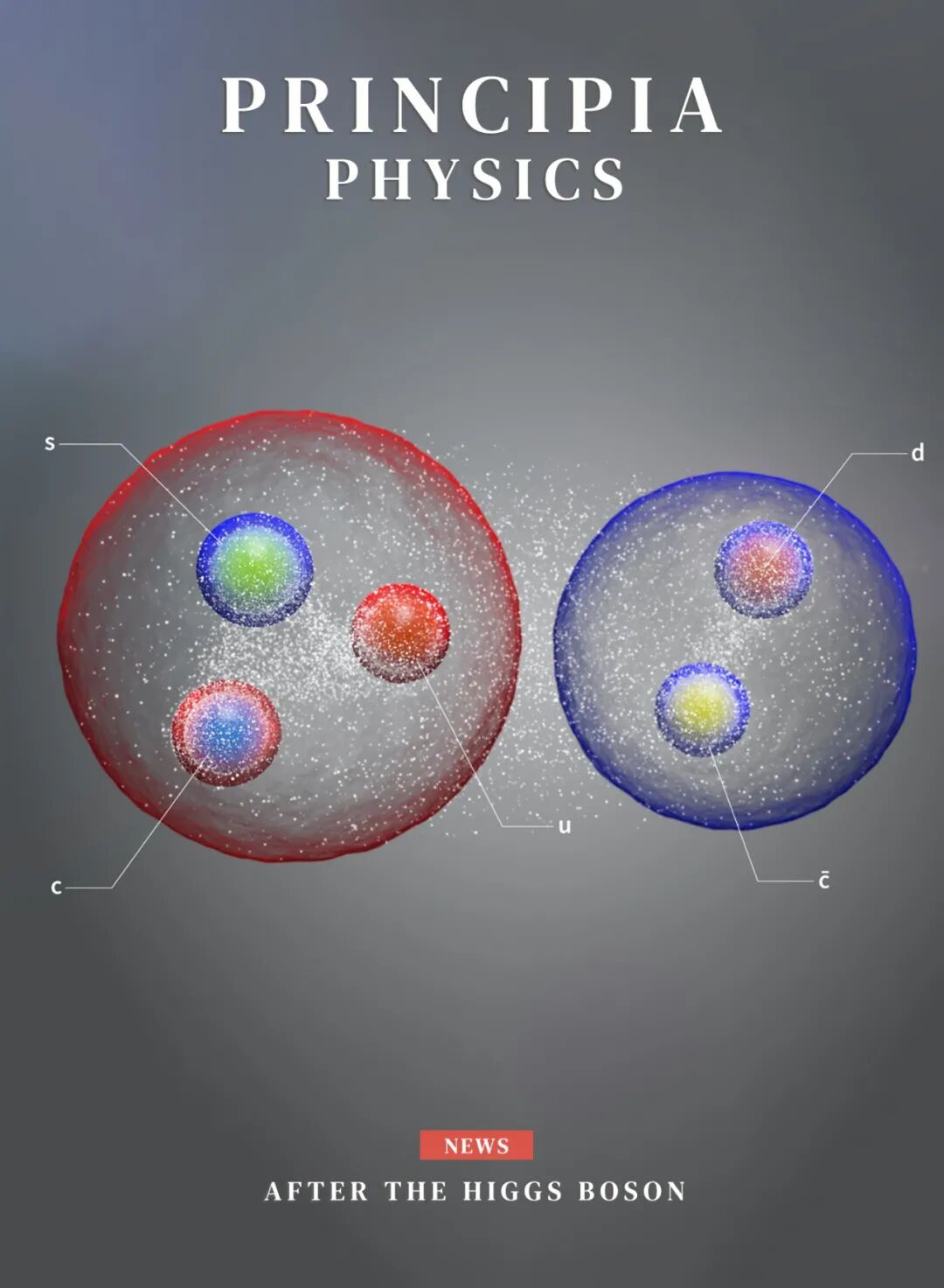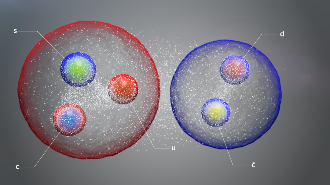 夸克是基本粒子,有6种味,分别被称为上(u)、下(d)、粲(c)、奇(s)、顶(t)和底(b)。它们通常以两个或三个的形式结合在一起形成强子,比如构成原子核的质子和中子。然而,更罕见的是,它们也可以以四个或五个的形式结合成奇异强子。