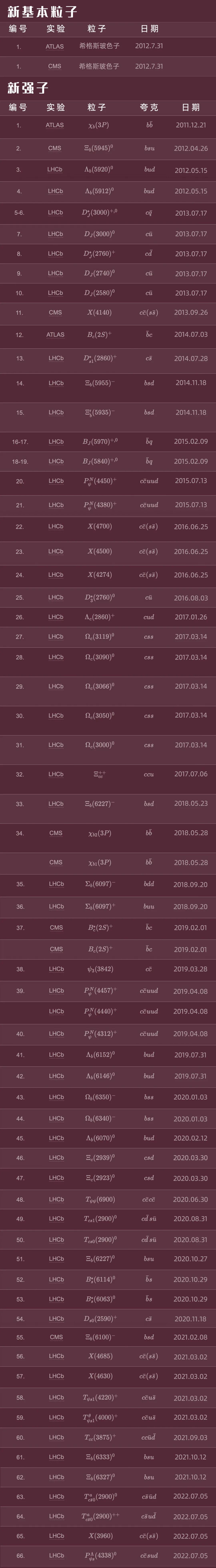 LHC发现的新粒子列表,可上下滑动查看。(数据/Patrick Koppenburg)