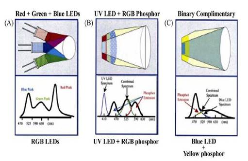 图5 三种获得白光LED的方法示意图