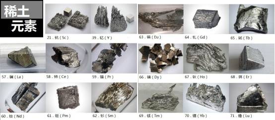 稀土元素是镧(La)、铈(Ce)、镨(Pr)、钕(Nd)、钷(Pm)、钐(Sm)、铕(Eu)、钆(Gd)、铽(Tb)、镝(Dy)、钬(Ho)、铒(Er)、铥(Tm)、镱(Yb)、镥(Lu)、钇(Y)、钪(Sc)共17种化学元素的合称。钪和钇因为经常与镧系元素在矿床中共生,且具有相似的化学性质,故被认为是稀土元素。