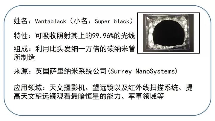 Vantablack自被创造出来,被吐槽的最多的也就是:它太黑了。这种“超黑”涂层由碳毫微管组成,每个碳毫微管都只有人类头发的一万分之一细,这种纳米管小到光线无法进入,只能穿过其间的缝隙。以致于其看起来特别黑。