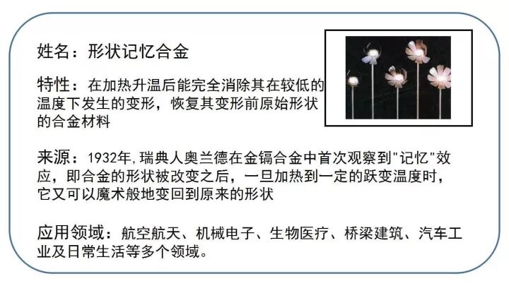 它的“记忆”,不是真的记忆。是一种在加热升温后能完全消除其在较低的温度下发生的变形,恢复其变形前原始形状的合金材料,即拥有“记忆"效应的合金。
