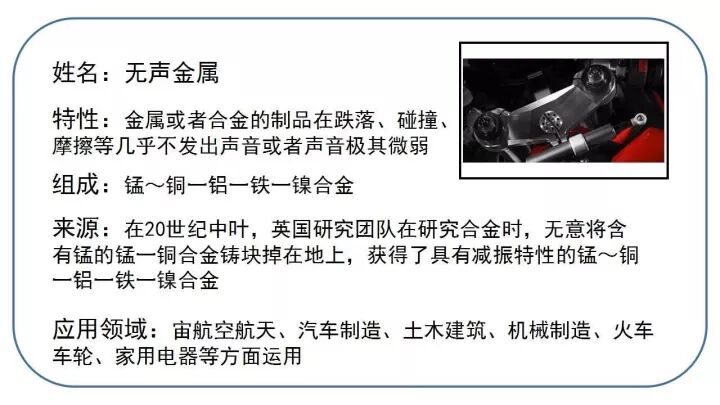 金属那是又厚又重众所周知,建筑工地上批零乓啷想必大家都深有体会,但是在材料界,有一种合金,它就算砸地上也是很轻微很细小的声音,顾思明意,它叫——无声金属