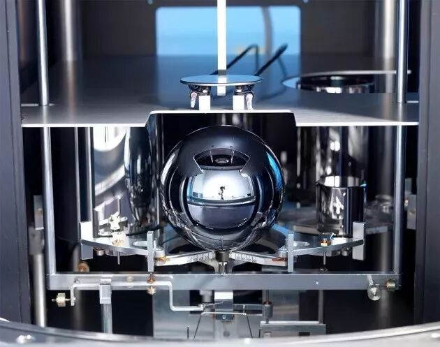 ○ 球形的纯硅可以用来定义单位“摩尔”。 | 图片来源:Natl. Phys. Lab., UK