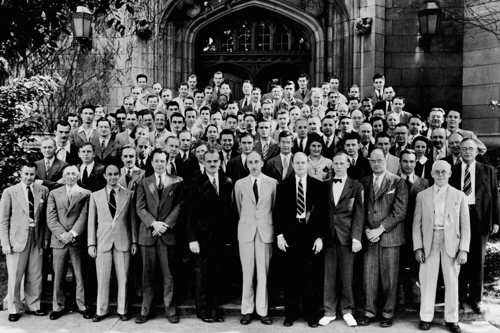 ○ 1952年,原子科学家聚集在一起共同庆祝受控核裂变链式反应10周年。 | 图片来源:University of Chicago Photographic Archive