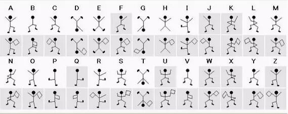 稍微复杂一些的还有多表替换的维吉尼亚密码。这种替换加密虽然乍看之下混乱无序,但通过统计手段就能恢复出密钥,比如统计密文字母的频率,并与自然语言中各个字母出现的频率相对比,从而揭示隐藏在乱序密文后面的加密规律。笔者第一次接触这种加密方法是在福尔摩斯探案集中《跳舞的小人》一章,里面介绍了用简单的小人图案来代替英文字母,福尔摩斯破译的方法就是频率分析法。