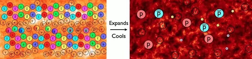 我们观测过的所有粒子之间的相互作用,无论是在什么能量等级,当一个粒子被制造或摧毁的时候,总是会伴随着一个反粒子被制造或摧毁。物质和反物质之间严格遵守着物理对称。例如,每当一个夸克(或轻子)被制造(或摧毁)的时候,也会有一个反夸克(或反轻子)被制造(或摧毁)。也就是说,在宇宙大爆炸后,粒子和反粒子应该等量地产生。