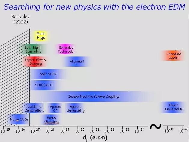 在不同标准模型的扩展中的电子偶极矩。(© Gabrielse group and D. DeMille)