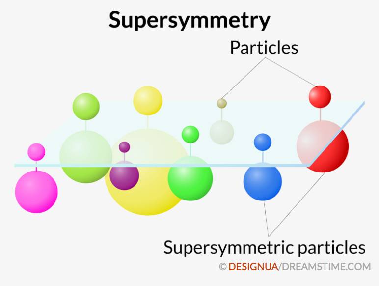 上部分为标准模型的基本粒子,下部分为它们的超对称粒子。超对称粒子要比它们对应的伙伴质量大的多。(© Designua)